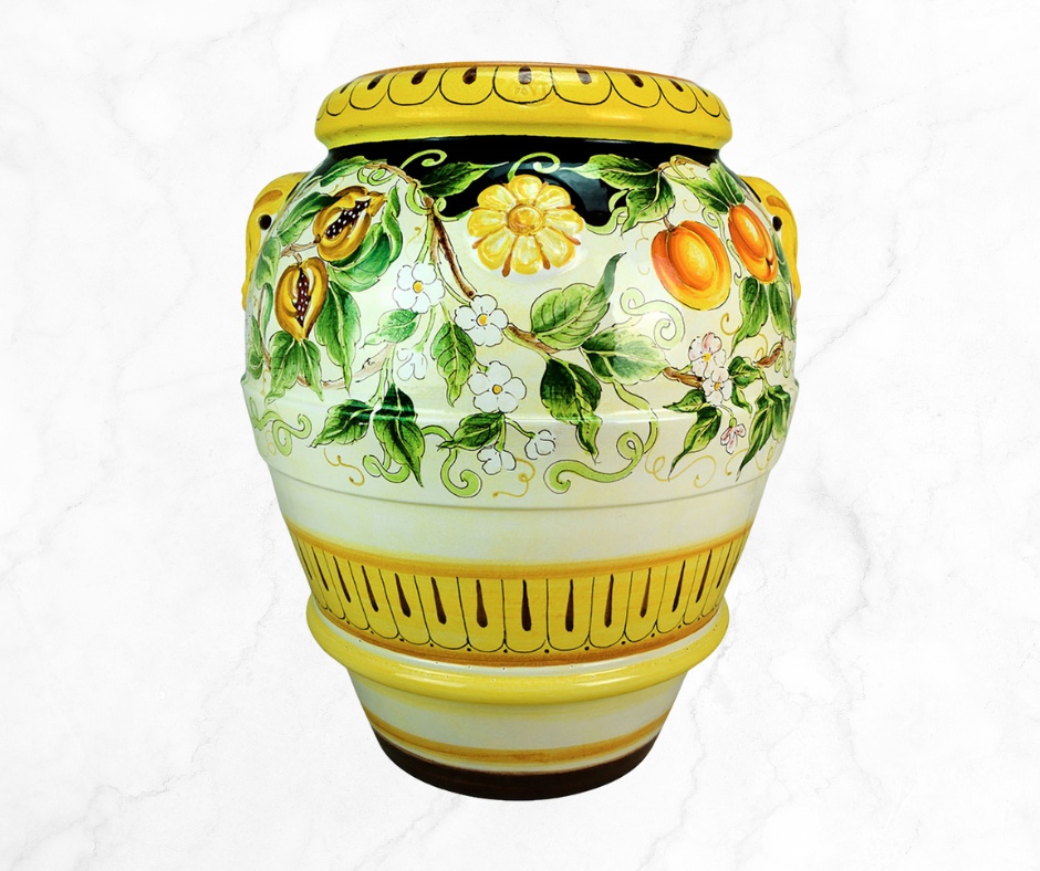 The Lemon Charm Ceramic Umbrella Stand brings a refreshing touch of Mediterranean beauty to your space. Handcrafted in Italy, it features vibrant lemon motifs on a finely crafted ceramic base, combining practicality with timeless elegance for a bright and inviting entryway.