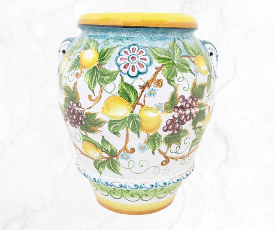 The Lemon Charm Ceramic Umbrella Stand brings a refreshing touch of Mediterranean beauty to your space. Handcrafted in Italy, it features vibrant lemon motifs on a finely crafted ceramic base, combining practicality with timeless elegance for a bright and inviting entryway.