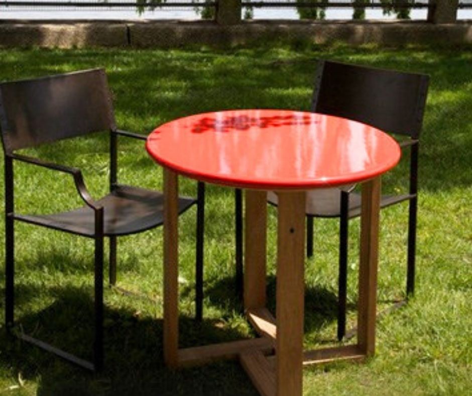 This red lava stone table is a truly striking piece of furniture. It is crafted from volcanic rock, a material known for its incredible strength and durability. The stone is first quarried and then shaped into a tabletop. After that, comes a special application of a special enamel glaze. This glaze goes then under extremely high temperatures, which fuses it to the stone. Consequently the process creates a smooth, non-porous, and vibrant red surface.